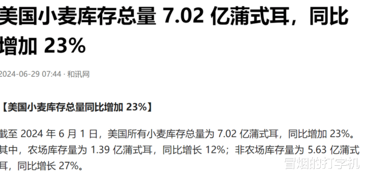其实不止玉米的库存创新高,美国的其他主要作物也是库存增加明显,像小麦就同比增加了23%的总库存。